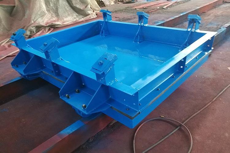 防水防火密閉門是煤礦井下主要的安全防護(hù)門之一,用于井下主變電所和主排水泵房通往井底車場的通道內(nèi),容易關(guān)閉,以防止水的突然浸入,承受壓力可達(dá)98KPa。防水防火密閉門門扇為平鋼板、井字筋板、圈梁等組焊而成,門框?yàn)椴垆?、工字鋼組合框架結(jié)構(gòu),拉緊裝置為楔形滑塊楔緊,安裝時(shí)按我廠原有設(shè)計(jì)將門組裝好,按照事先預(yù)留好的位置將門與硐室門口連成一體。