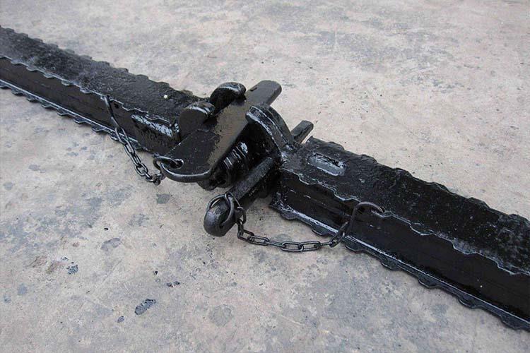 鉸接頂梁是煤礦巷道中常用的支護(hù)頂梁,其長度比較短,帶有鉸接連接頭,它可以與帶有鉸接頂蓋的各種類型的單體液壓支柱配合使用組成金屬支架,供煤礦的水平及緩傾斜回采工作面支護(hù)使用。鉸接頂梁能懸臂支護(hù)工作面輸送機上面的頂板,使煤壁與支柱間有較大的空間,從而為采用新型采煤機械和可彎曲輸送機,實現(xiàn)采煤機械化提供條件。